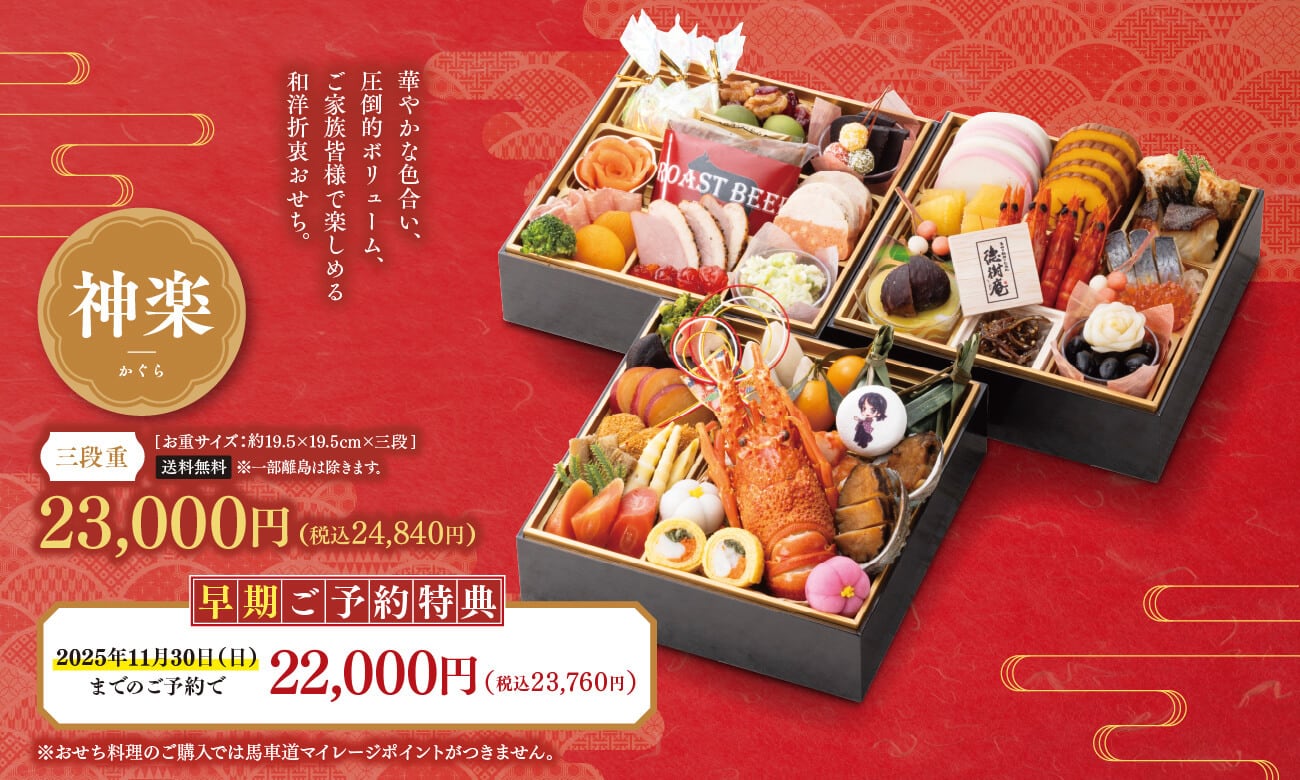 【早期②11月 ご予約特典価格】おせち三段重『神楽』(送料無料)